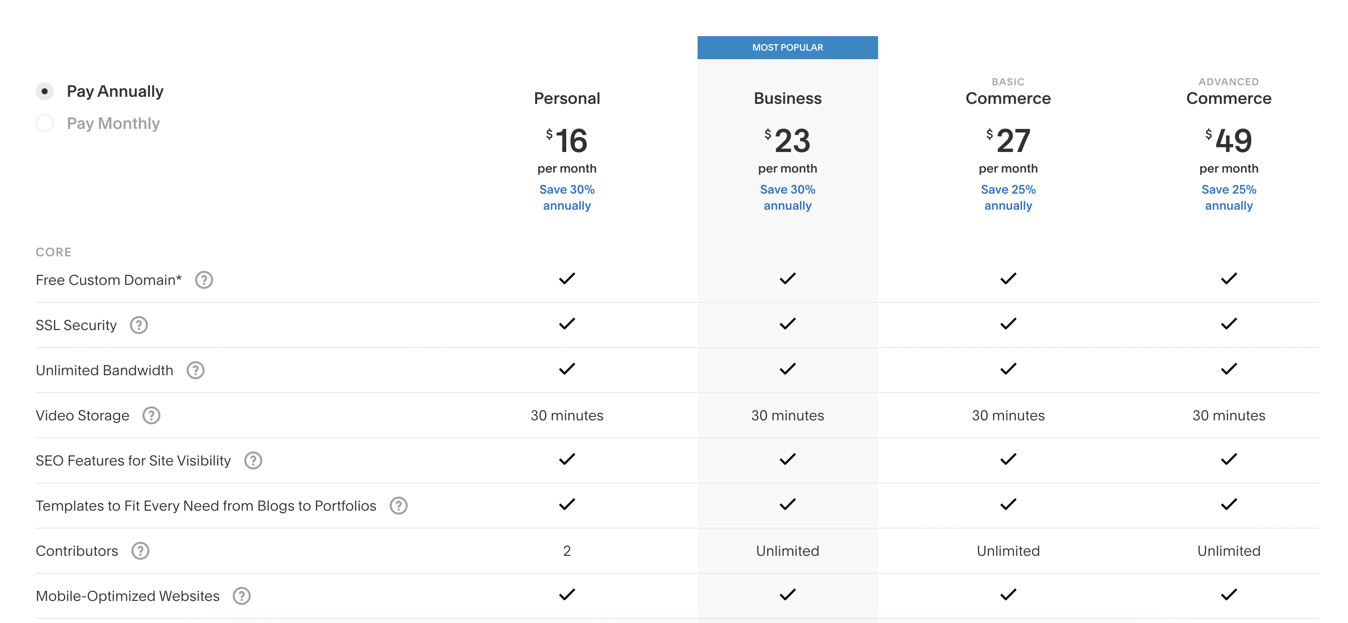 디자인, 마케팅, 컨텐츠 페이지를 모두 다 한 곳에서 볼 수 있음 단점이라면 가격은 윅스에 비해 약간 비싼 편이고 (USD $10불 차이) 한국어를 제공하지 않습니다. 디자인의 높은 미려한 수준을 유지하기 위해 원하는 기능이 제한적입니다. 그래서 이를 상쇄하기 위해 기능 추가를 위한 플러그인(Plug-in) 서비스가 많습니다. 하지만 그럼에도 불구하고 많은 개인 프리랜서들이 쓰는 이유는 마치 애플과 같이 디자인에서 만족스러운 면을 보여주고 있습니다.