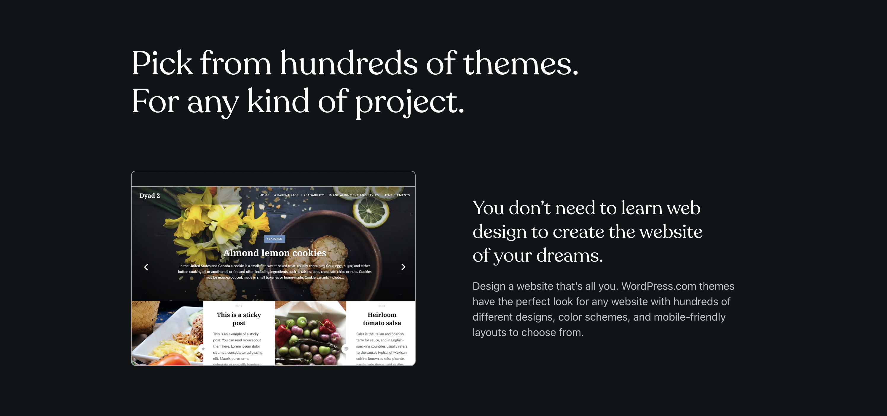 하지만 현재는 트렌드에 맞추어 번거로운 설치 과정 없이 바로 로그인 후 사용할 수 있게 닷컴 .com을 따로 만들어 서비스를 제공하게 되었습니다. (직접 설치하여 사용하는 방식은 https://wordpress.org/ 따로 서비스가 있음)